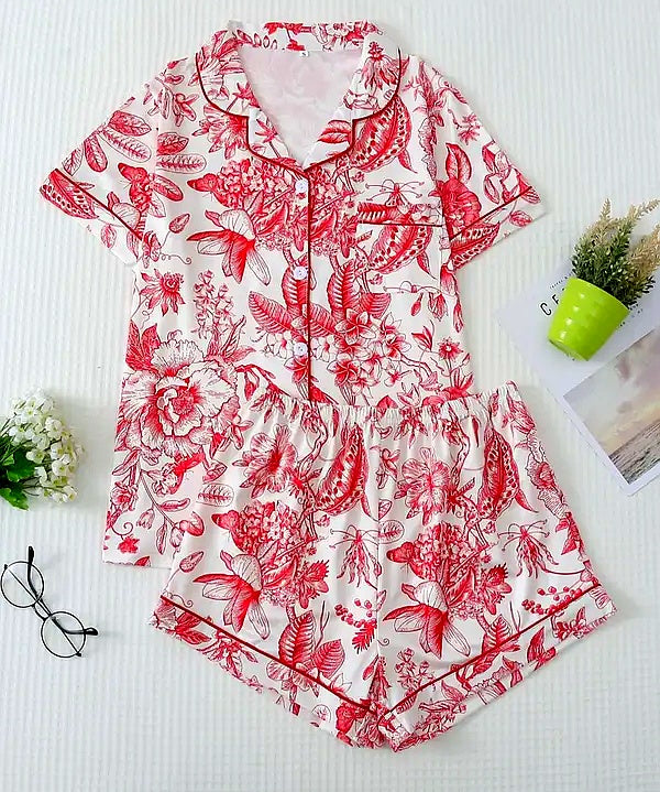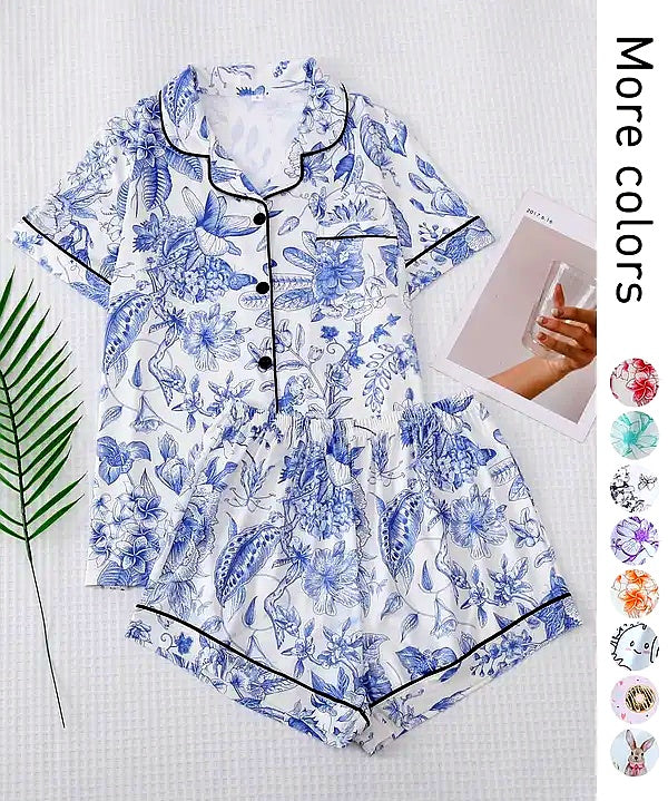 Floral Satin Cami Shorts Pajamas Set