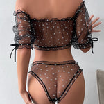 Ruffle Hem Perspective Bow Tie One-Shoulder Set