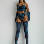 Watercolor Mesh Lingerie Set with Gloves and Hold-Ups