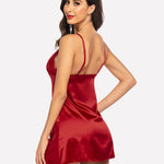 Satin Lace Mini Dress V Neck Nightgown