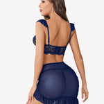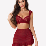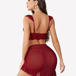Lace bra + Mesh ruffle mini skirt + lace g string