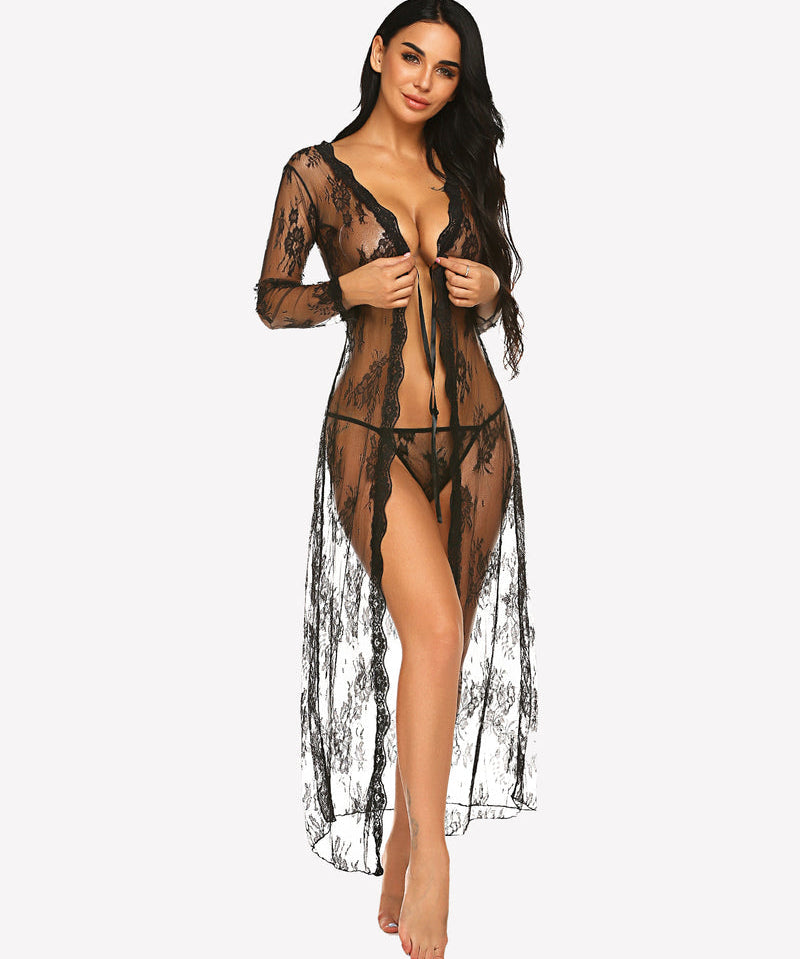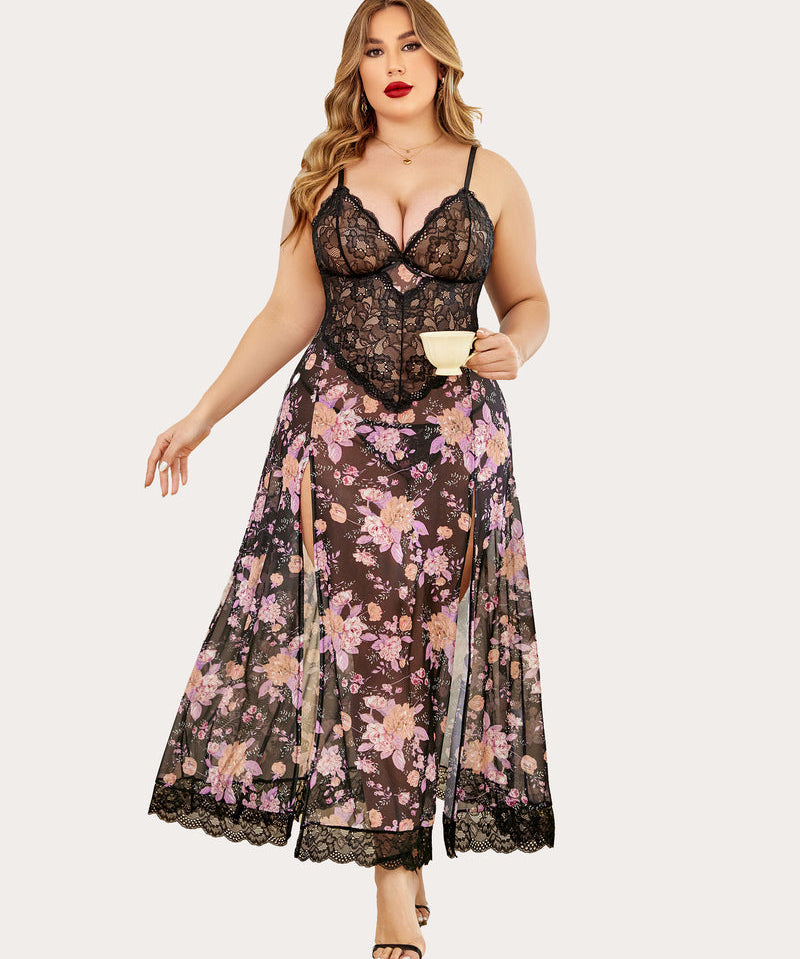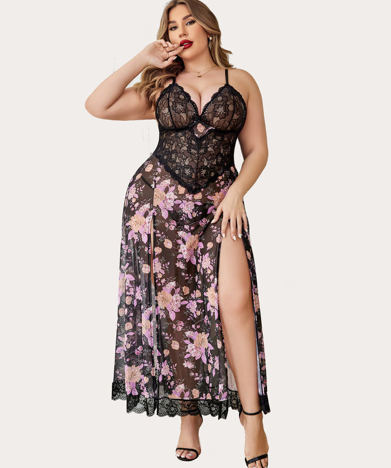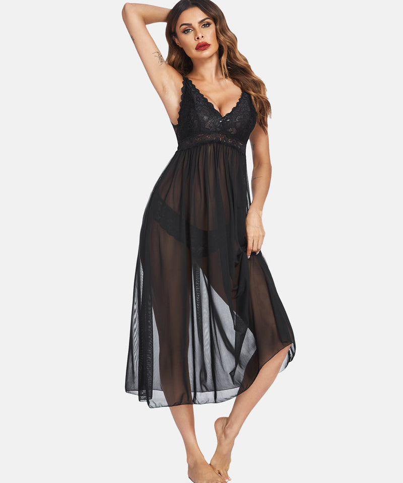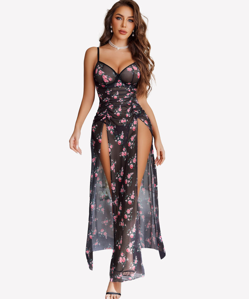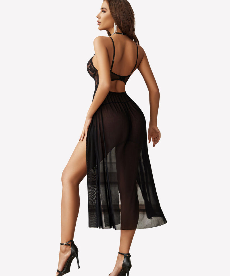 Mesh Nightdress Strappy Exotic Side Slits Sleepwear