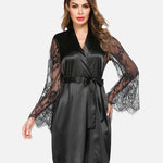• Elegant Design: Floral lace long flared sleeves, satin detachable belt, classic oblique V-neck satin kimono robe design. This loose kimono robe is lightweight and comfortable like an expensive silk robe. Unique and chic style makes you more elegant and charming.