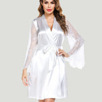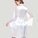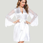 • Various Occasions: Sleep, lounge, vacation, spa, bathrobe, also great for the bridal party, taking wedding photos, or as a gift for your friends, parents, lover, wedding; clothing length: above the knee; Nicely lace sleeves and silk fabric give even more appealing a look. The robe lingerie will keep you relaxed and comfortable in daily life.