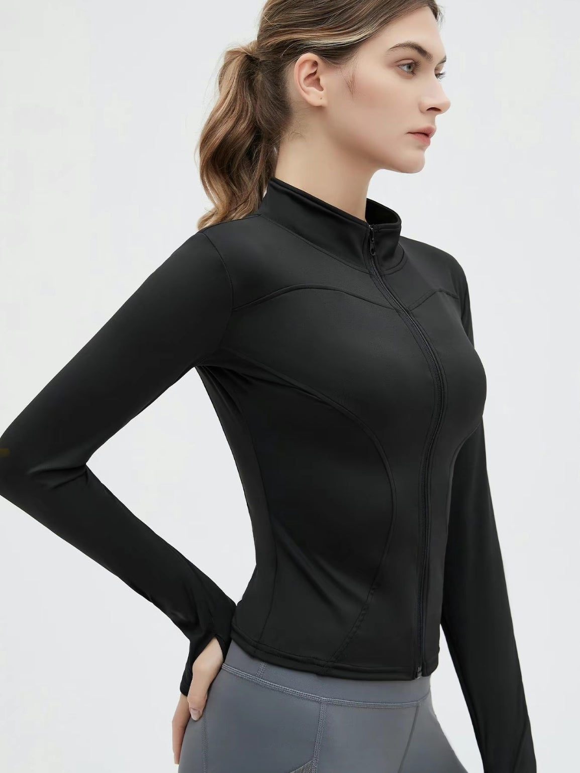 The SleekFit Zip-Up Jacket is where performance meets everyday style — smooth lines, sculpting fit, and that feel-good stretch that moves with you.